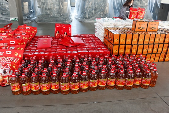 當(dāng)那琳瑯滿目的福利整齊地?cái)[放在眼前時(shí),大家的臉上都露出了燦爛的笑容。首先映入眼簾的是一袋袋飽滿的大米和白面,它們象征著生活的富足與安穩(wěn)。大米,潔白如玉,煮出的米飯香氣四溢,每一粒都承載著對(duì)美好生活的期許;白面,如雪般細(xì)膩,能變幻出各種美味的面食,寓意著新的一年里生活豐富多彩。這些主食不僅實(shí)用,更是公司對(duì)員工生活的細(xì)致關(guān)懷。